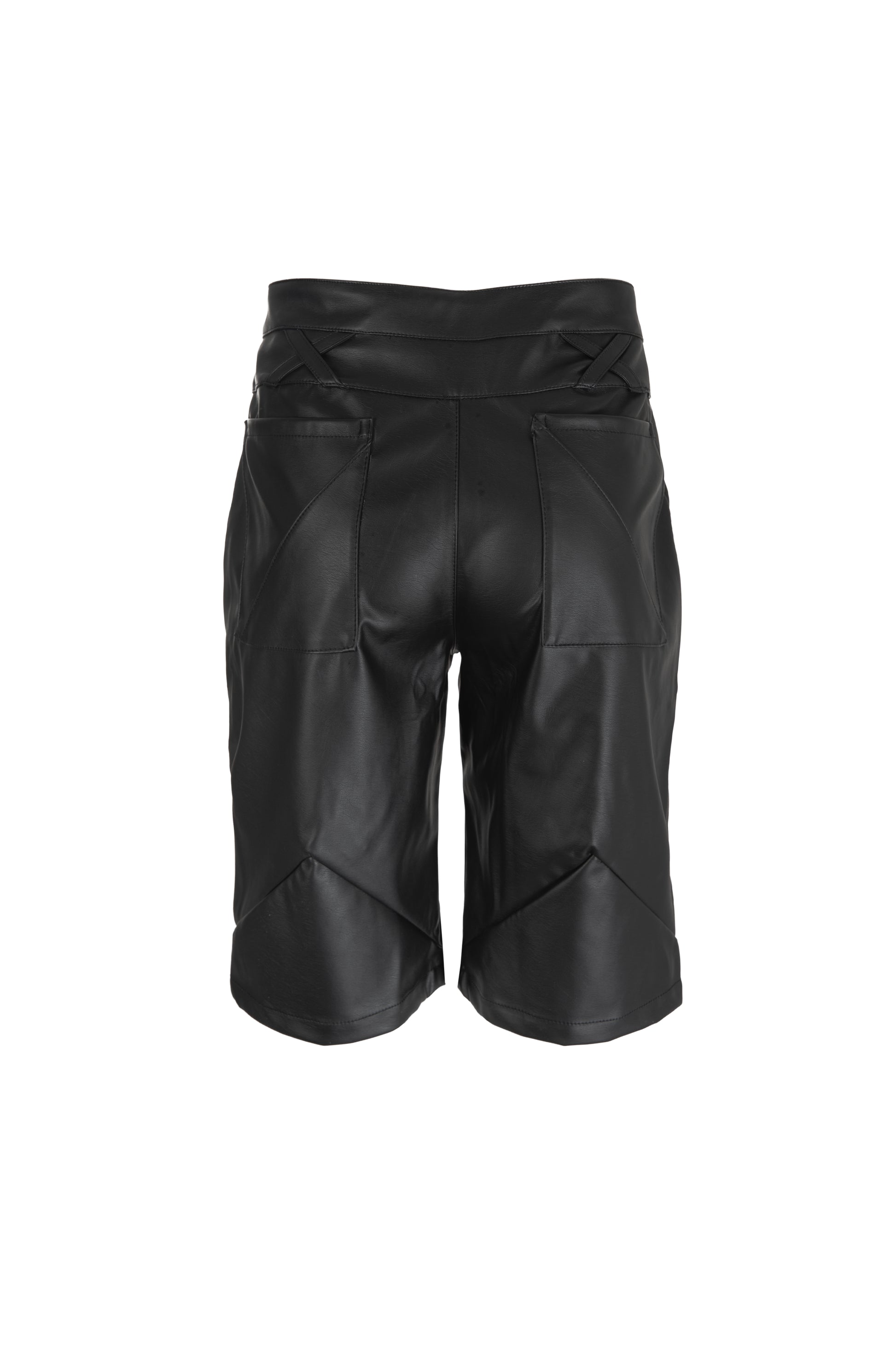 Short de corte recto con doble pretina, cortes en triángulo, pasadores en X y broches en cintura diseñado para el hombre que busca estilo audaz. Confeccionado con detalles arquitectónicos que añaden personalidad y sofisticación.